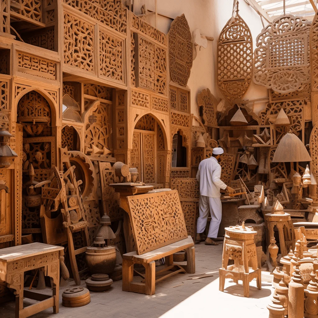 La menuiserie marocaine, influencée par diverses cultures telles que l’andalouse, l’arabe et l’amazighe, est connue pour ses designs complexes et son travail détaillé du bois. Les artisans, appelés « menuisiers », utilisent des techniques transmises de génération en génération pour créer des meubles, des portes, et d’autres objets en bois.